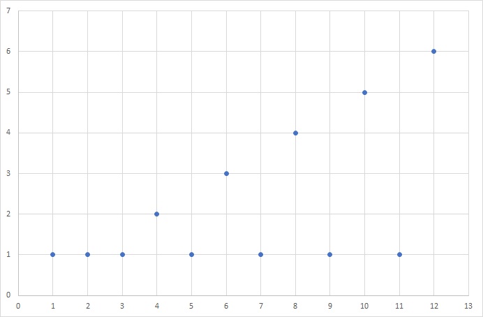 Por ejemplo: la secuencia infinita 1, 1, 1, 2, 1, 3, 1, 4, 1, 5, 1, 6, … se representa gráficamente como se ve en la gráfica de abajo. Y en fórmulas, se describe así: