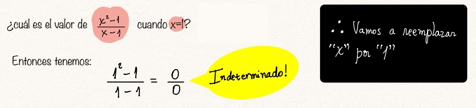 En algunas ocasiones se presenta el cálculo de límites de cocientes, diferencias y productos de funciones en los que al reemplazar la variable por el valor al cual tiende se generan indeterminaciones del tipo: