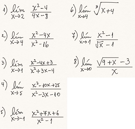 EJERCICIO 4: Desarrollar los siguientes límites en el cuaderno y presentarlo al docente: