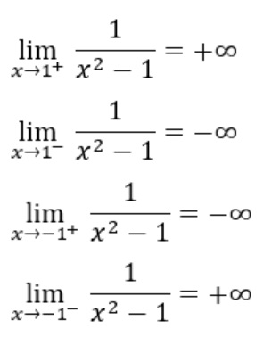 En las funciones racionales (fracciones de polinomios), los puntos que anulan al denominador son puntos donde, generalmente, los límites laterales no coinciden. Veamos lo siguiente: