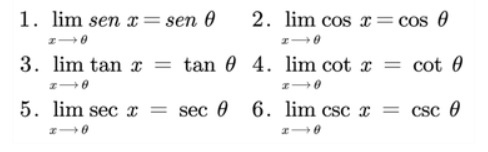 De la misma manera en que se puede calcular por sustitución directa los límites de muchas funciones algebraicas, también las funciones trigonométricas fundamentales cuentan con esa propiedad, como se enuncia en el siguiente teorema.