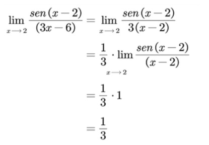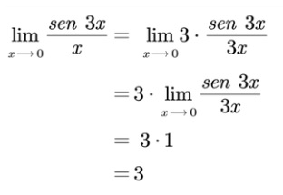 En este caso el ángulo de la función trigonométrica es 3x, por lo que para poder aplicar el teorema correspondiente necesitamos que también en el denominador el valor del argumento sea 3x. Para poder satisfacer este requerimiento multiplicamos por 3 tanto en el numerador como en el denominador.