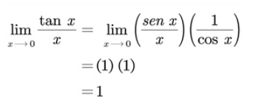 La sustitución directa nos produce una forma indeterminada 0/0. Para ello utilizamos identidades trigonométricas para obtener una expresión equivalente tal como: