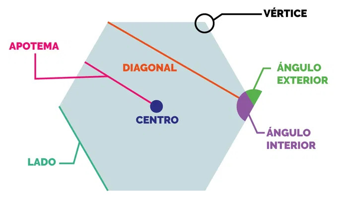 6. Apotema de un polígono regular: La apotema de un polígono regular es el segmento perpendicular a un lado desde el centro del polígono. Es básica para conocer el área del polígono ya que es la altura de cada uno de los triángulos formados por cada dos radios y el lado.