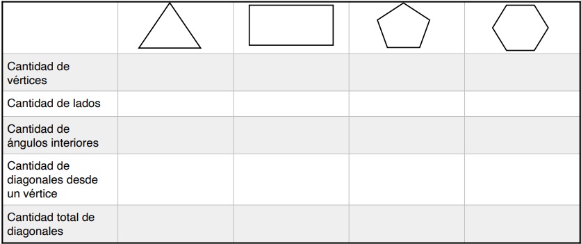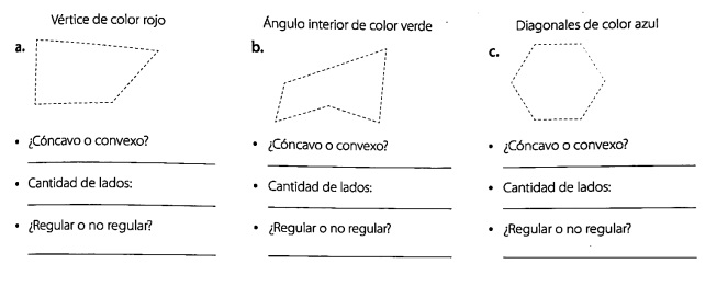 1. Identifica cada elemento en los polígonos y márcalos con el color indicado. Luego, completa lo solicitado