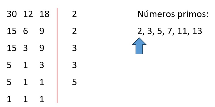 NOTA: Si el número a descomponer no se puede dividir, se baja tal cual el número, como en la tercera línea el 15 y el 9.