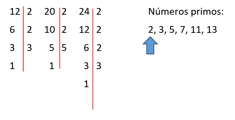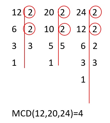 Ejemplo 2: Hallar el MCD de 12, 20 y 24