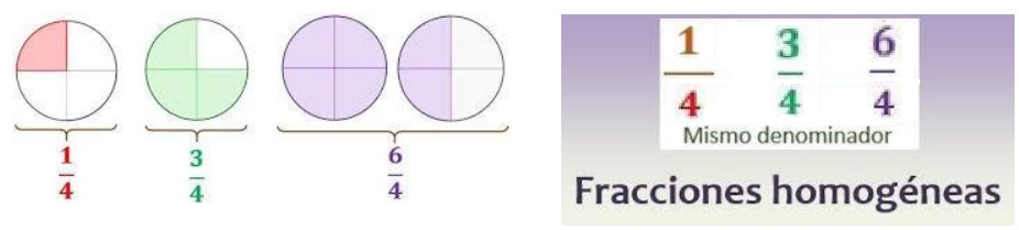 Son aquellas que tienen el mismo denominador, eso quiere decir que están divididas por el mismo número de partes: