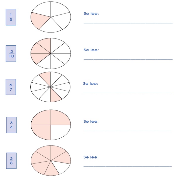 3. Une la fracción con la gráfica y al frente escribe como se lee.