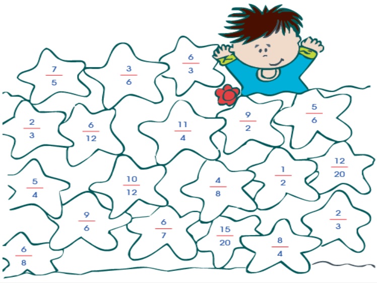 5.. Colorea de rojo, las estrellas con fracciones impropias y de amarillo, las estrellas con fracciones