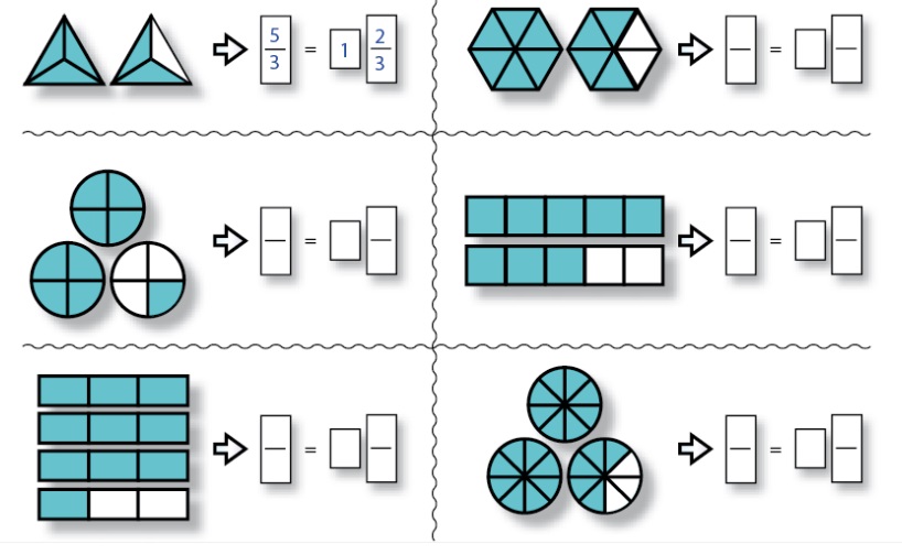 6.Escribe la fracción impropia y el número mixto que corresponde en cada caso.