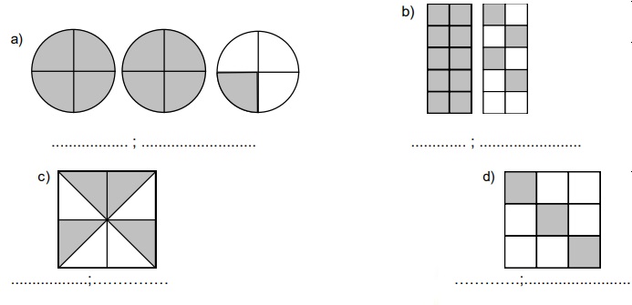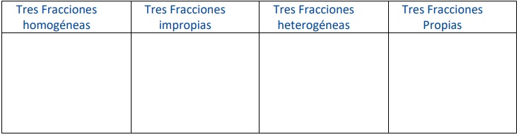 8. Escribe las fracciones que representa la parte pintada y clasifícalas en propias e impropias: