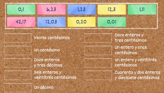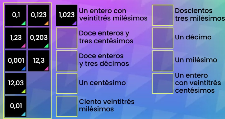 2. Realiza la siguiente actividad a través del juego de la lectura y escritura de decimales: