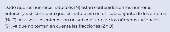 Ahora si aterricemos lo visto en el video: Los números enteros son el conjunto numérico que abarca la totalidad de los números naturales, sus inversos negativos y el cero. Es decir, se trata de los números que se utilizan para contar, junto con sus opuestos de signo negativo (1 y -1). Normalmente, los enteros negativos se escriben con su signo (-), cosa que no hace falta para los positivos, pero puede hacerse en ocasiones para resaltar la diferencia (+1 y -1).