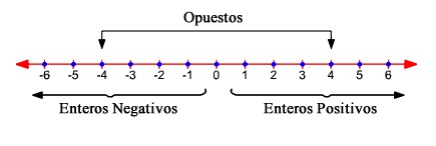 Como decíamos antes, los números negativos se consideran como los opuestos de sus simétricos positivos y viceversa. Es así que:
