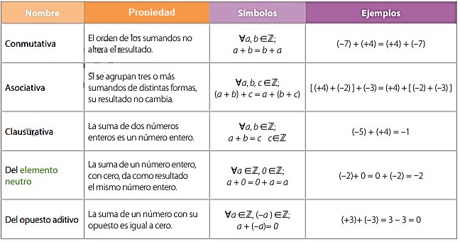 Debido al cumplimiento de estas 5 propiedades, se dice que el conjunto de los números enteros con respecto a la adición tiene estructura algebraica de grupo abeliano o grupo conmutativo cuya notación es ℤ, + es grupo abeliano.