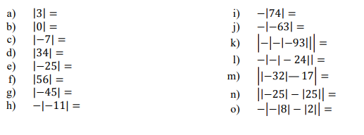 2. Resolver los siguientes ejercicios de valor absoluto (en el cuaderno):