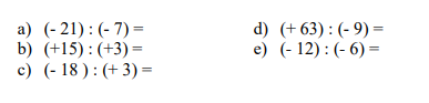 b) División de números enteros de distinto signo: el cociente de dos enteros de distinto signo es un número positivo.