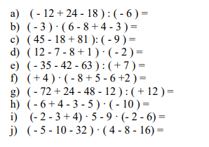 Ejemplos: + 12 : - 6 = - 2 - 40 : + 4 = - 10