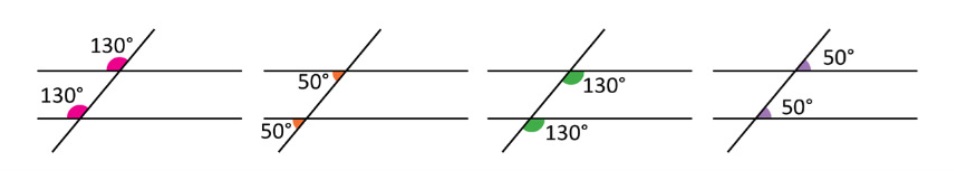 1. Si dos rectas paralelas son cortadas por una recta secante, los ángulos correspondientes son iguales, esta afirmación también se cumple con los ángulos alternos internos y alternos externos.