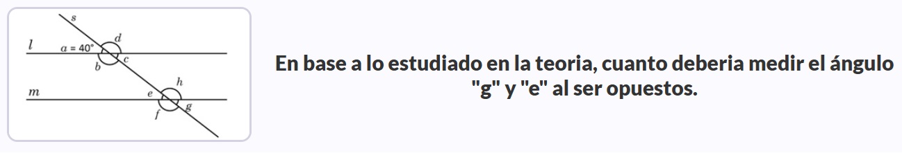 1. Observa en la imagen los ángulos formados por dos rectas paralelas y una transversal a ellas: