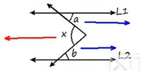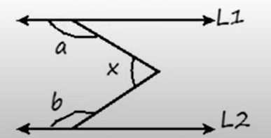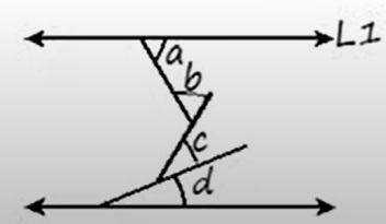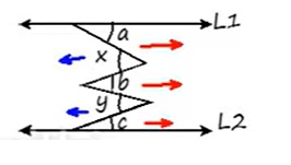 4. Propiedad de la ramita: La suma de todos los ángulos en la ramita entre dos paralelas es igual a 180°