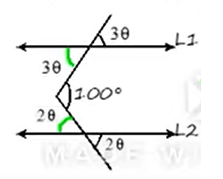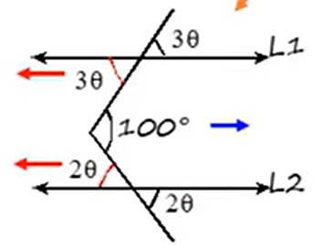 Acá aplicamos dos propiedades, primero la de ángulos opuestos por el vértice son iguales, es decir para 2θ y 3θ