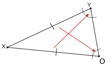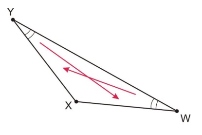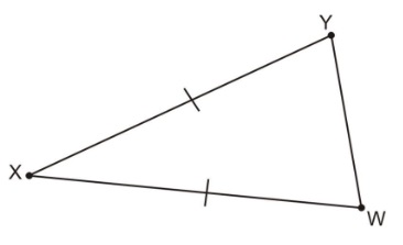 Este diagrama muestra flechas señalando a los lados congruentes. Los lados congruentes en este triángulo son XY y XW.