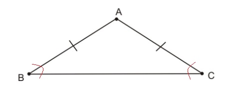 Un triángulo isósceles está definido como un triángulo que tiene al menos dos lados congruentes. En esta lección probaras que un triángulo Isósceles también tiene dos ángulos congruentes opuestos a los dos lados congruentes. Los lados congruentes del triángulo isósceles son llamados los catetos del triángulo. Sl otro lado es llamado base y los ángulos entre la base y los lados congruentes son llamados ángulos base. El ángulo formado por los dos catetos del triángulo isósceles se llama ángulo vértice.