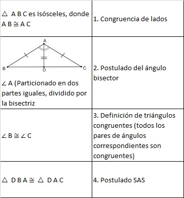 4. Si dos lados de un triángulo son congruentes, entonces los ángulos opuestos a esos lados son congruentes (aplica para triángulos isósceles).