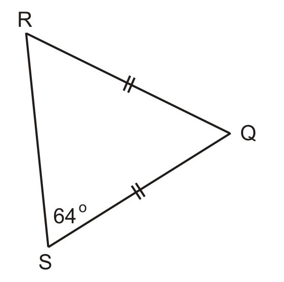 - ¿Cuál es la medida de cada ángulo base en el triángulo △ R S Q?