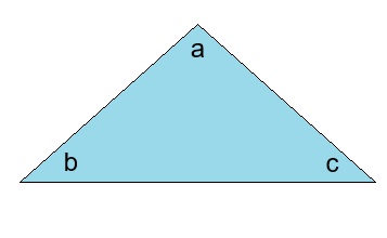 Un polígono es una figura bidimensional cerrada formada por varios segmentos rectos (llamados lados). En un polígono, un ángulo interior es un ángulo que se encuentra dentro del polígono. Un triángulo tiene tres lados y tres ángulos interiores. En el triángulo de abajo, los tres ángulos interiores se denominan a, b y c.