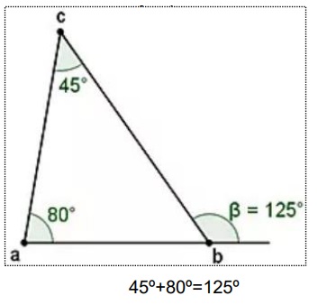 3. La medida de un ángulo exterior es igual a la suma de las medidas de los ángulos interiores no adyacentes a dicho ángulo.
