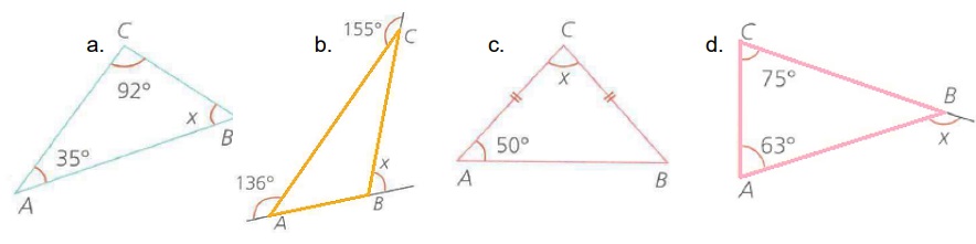 c. No podemos afirmar nada, pues en ningún triángulo se dan las medidas de sus tres ángulos.