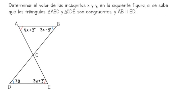 Para encontrar los lados congruentes, necesitas encontrar los lados que son opuestos a los ángulos congruentes.