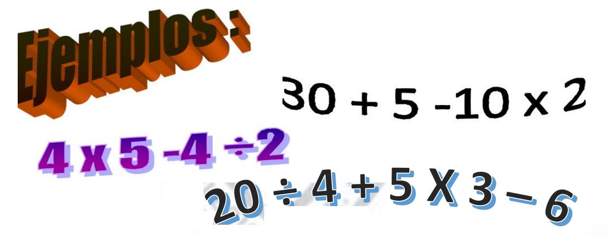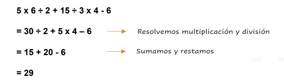 EJEMPLO 1 : 5 x 6 ÷ 2+ 15 ÷ 3 x 4 – 6