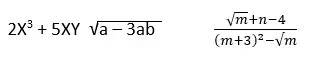 C. Expresiones algebraicas irracionales: Contienen expresiones radicales en sus términos o variables con exponente racional no entero
