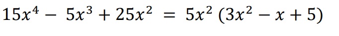 y el factor común literal está conformado por el o los elementos de la parte literal (letra) presentes en todos los términos con el menor exponente.