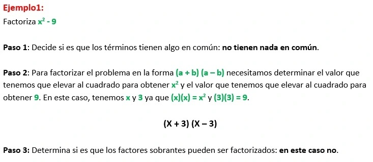 En este tema se analizarán los procedimientos, que se pueden usar con un binomio para ser factorizado, tales como la diferencia de cuadrados, suma o diferencia de potencias iguales y suma o diferencia de cubos.