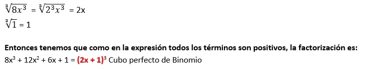 b. Dos términos (el primero y el último) son cubos perfectos, es decir existe su raíz cubica dentro del conjunto de los Enteros.