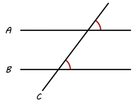 2. Ángulos Correspondientes: son un par de ángulos que podemos encontrar del mismo lado de una transversal que corta dos rectas paralelas. Estos ángulos se encuentran en el mismo nivel respecto a la recta paralela a la cual pertenecen y tienen la misma medida o ángulo.