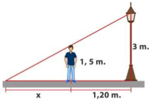 3. Nicolás mide 1,50 m. de altura, se encuentra a 1,20 m. de un poste que tiene encendida su luminaria a 3 m. del suelo, ¿cuál es el largo de la sombra que proyecta Nicolás?